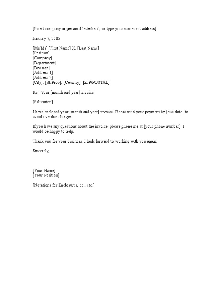 I have enclosed your month and year invoice. Your month and year invoice. Cover Letters for InvoicesExplanation of Fees.